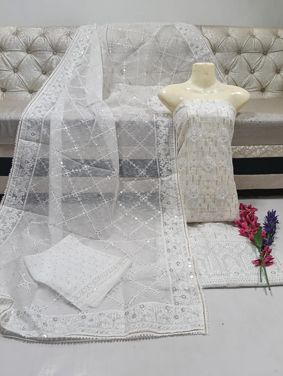 Experience the elegance of Bareezé-style embroidery on premium Khaadi cotton, known for its breathable, soft texture. This fabric combines traditional craftsmanship with modern comfort, making it ideal for sophisticated yet comfortable apparel. Perfect for those who appreciate detailed embroidery paired with the durability and natural feel of Khaadi cotton.